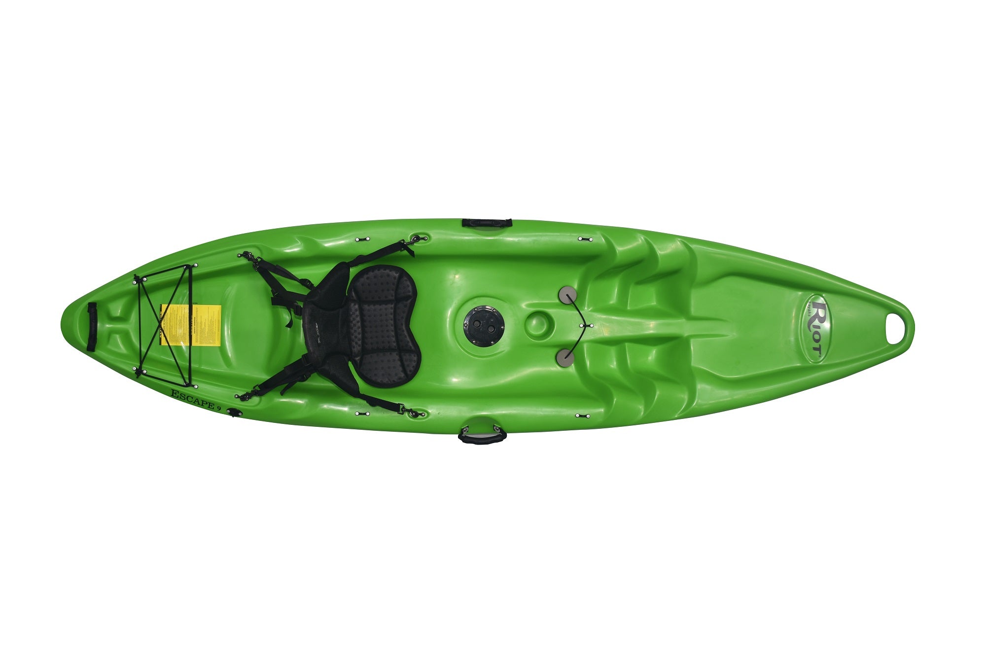 Empilable et facile à verrouiller grâce à la poignée avant moulée, l'Escape 9 est l'embarcation de choix pour le chalet ou pour compléter vos pieds de location. Sa coque arquée avec trous de drainage en fait un kayak pratique, durable et agile, rapide pour sa longueur et un plaisir à prendre dans le surf, aussi !