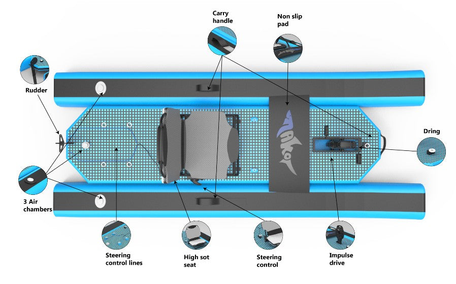 Le Mako 8.5 Air est le meilleur kayak gonflable à pédales pour les pagayeurs qui recherchent un design compact et léger pour un transport et un stockage facile sans compromis sur la qualité. Le Mako 8.5 Air est très bien noté en termes de stabilité, de trajectoire, de confort et de plaisir ! Le design catamaran comprend 3 chambres à air faciles à gonfler et un système Governail avec direction manuelle pour fournir une stabilité et un suivi extrêmes dans une variété de types d'eau et de conditions. De plus, l'Impulse Pedal Drive inclus est un système à hélice qui propulse sans effort votre kayak vers l'avant, permet de faire marche arrière dans les endroits étroits, et rend les aventures plus longues plus amusantes avec moins de fatigue. Le Mako 8.5 Air est livré avec une pompe, un sac de transport, un kit de réparation, Propulsion à hélice, et un siège.