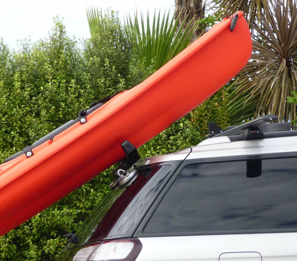 Finally, a loading system that installs in seconds, fits nearly any type of canoe or kayak and anyone can install. Use the K-Rack with sedans, hatchbacks, SUV's and vans for hassle-free simple boat loading. With its unique cradle shape that centers and holds the boat's keel, the K-Rack provides a self-aligning universal fit loading platform. The K-Rack quickly locks into place with a flip of the two vacuum control levers that provide a rock solid abrasion resistant bond anywhere on the vehicle's rear glass or sheet metal. Once finished, store them in your trunk or rear compartment for later use. It just doesn't get any easier than this.