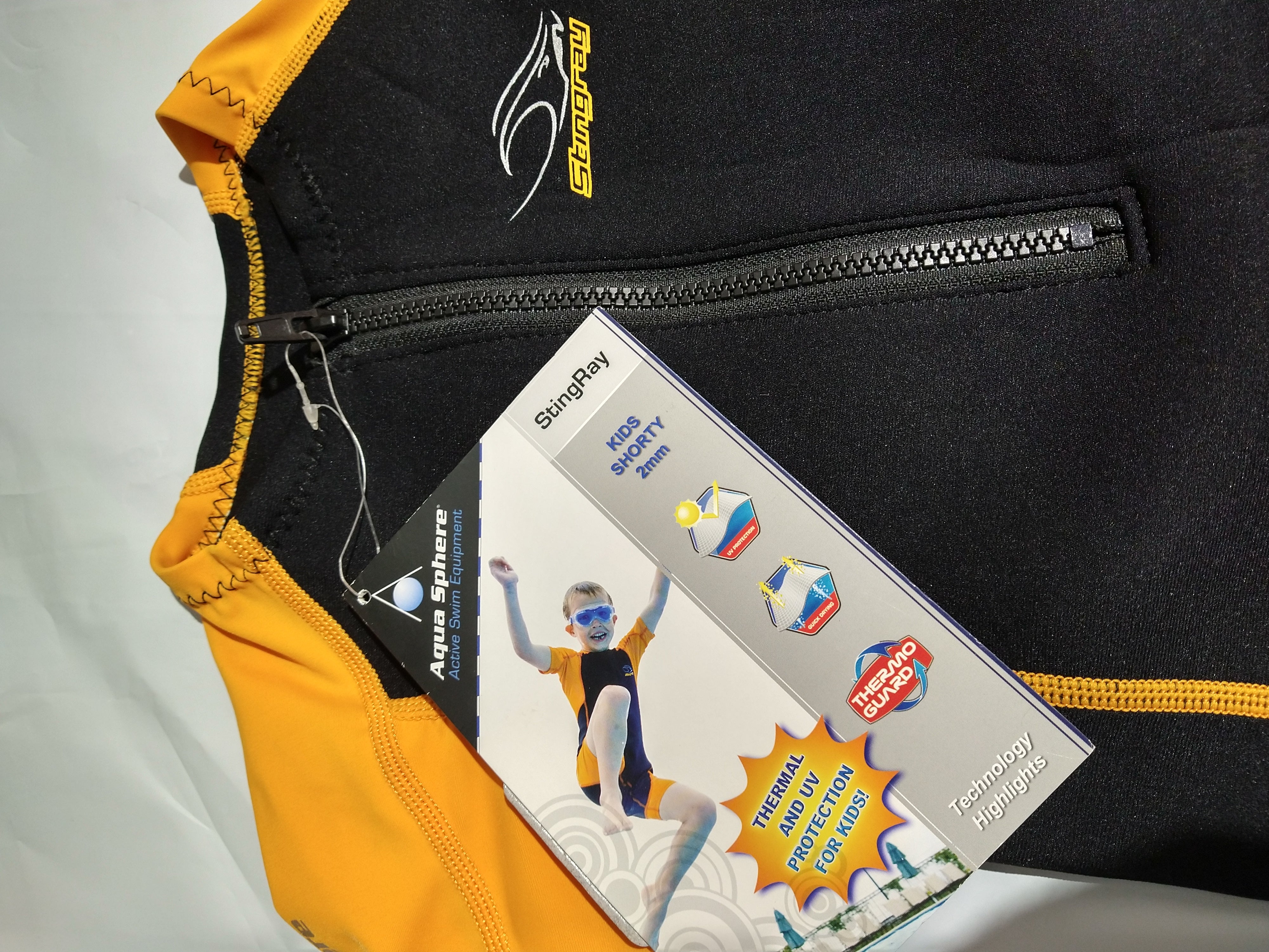 Aqua Sphere Kid's Stingray Shorty 2mm Wetsuit Orange/Black.