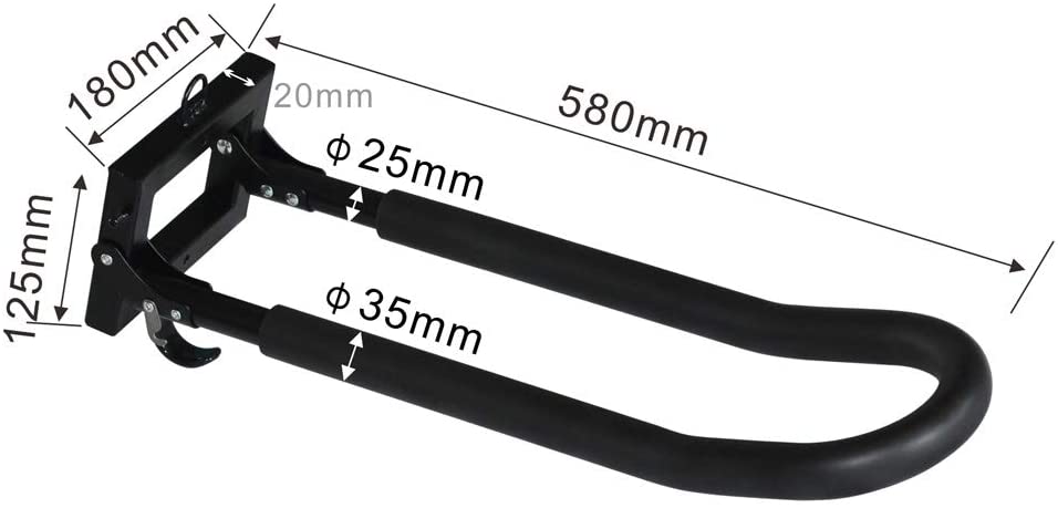 This rack is great for storing your kayak on the wall. Two padded cradles hold your kayak whilst the small hooks beneath will hold a paddle or can be used to hang your paddling gear from. The cradles simply fold flat against the wall when not in use. Includes wall fixings. Max Load 40kg.