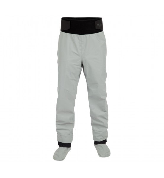 Start your paddling adventure off with dry, warm wool socks and end your paddling adventure with dry, warm wool socks when you're wearing the Kokatat Hydrus 3l Tempest Pant. These dry pants with socks are constructed with Kokatat's Hydrus 3. 0 fabric that is both waterproof and highly breathable. The socks are made of the same material and also have a gravel guard to keep your feet protected when you're walking on the river banks without shoes. Adjust the neoprene waistband for a secure fit and secure your paddling jacket over the pants and head out for a chilly day of paddling in comfort.