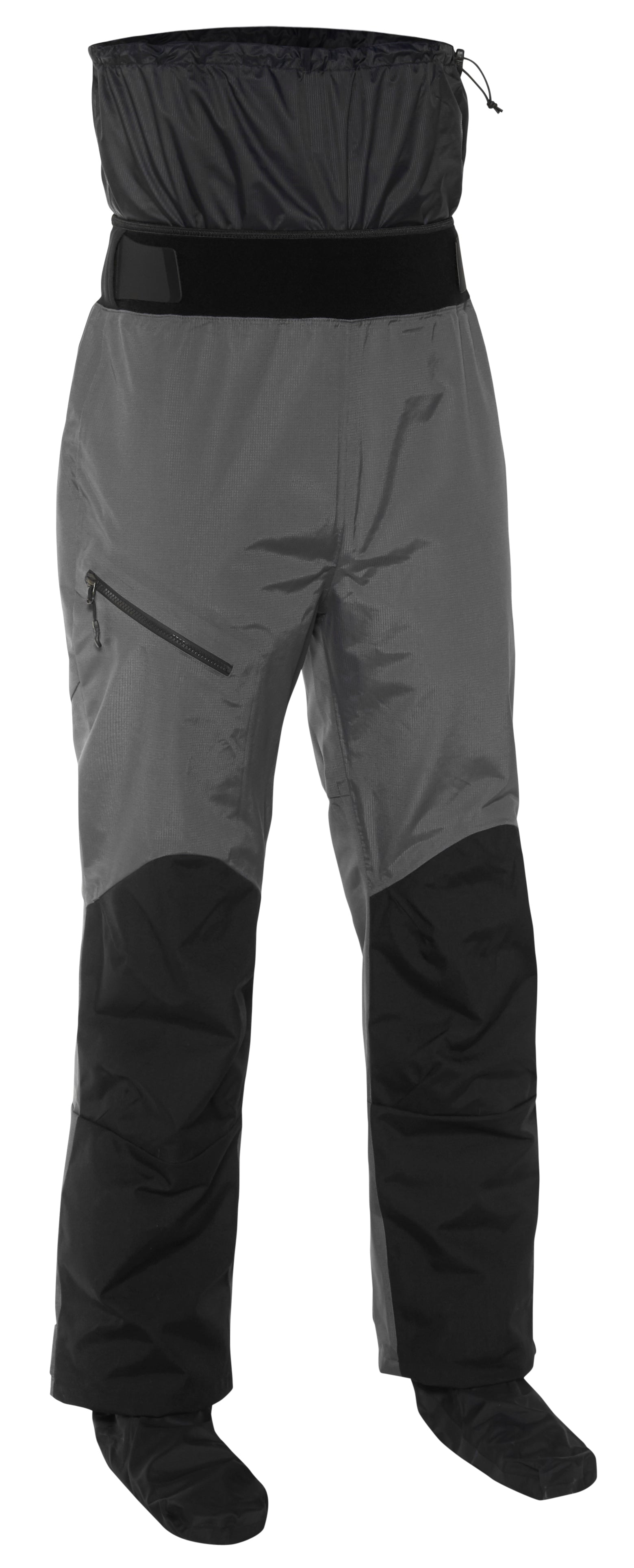 • The 3" wide double-pull hook-and-loop closure cinches snug at the waist and there's an additional 8" nylon waist tunnel to mate with your dry top to seal water out.