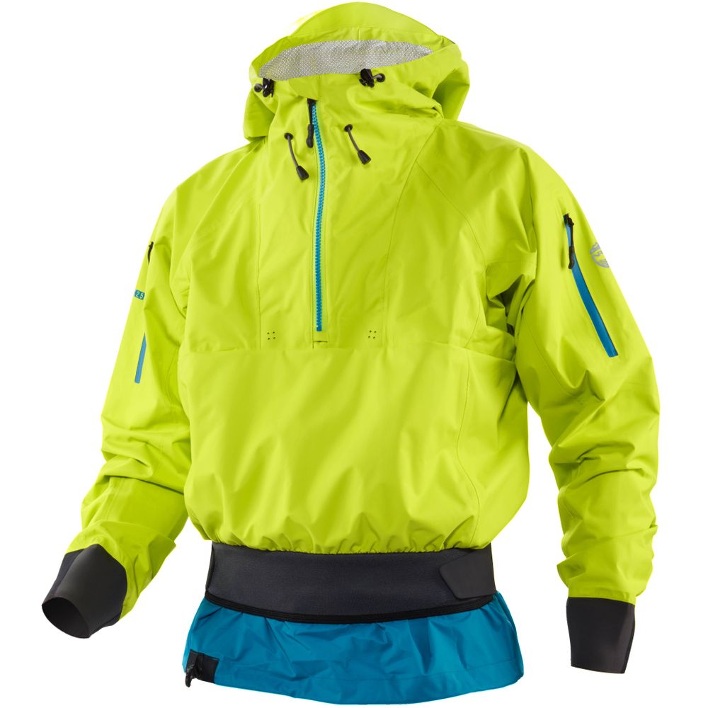 Designed for versatile and adaptable protection at a friendlier price, the waterproof-breathable NRS Women's Riptide Splash Jacket is perfect for kayakers who don't let the forecast dictate their paddling plans. - Lightweight HyproTex™ material repels water while letting excess heat and moisture escape for all-day waterproof comfort. - Stretchy urethane neck closure adjusts for added ventilation or extra protection from splash. - Punch-through neoprene wrists offer more comfortable protection than latex gaskets. - Features a half-zip collar and articulated hood, doubling the protection against rain and wind, while allowing easy ventilation on calmer days. - Kayak overskirt with bungee adjustment joins with your spray skirt keeping water out of your cockpit. - Two splashproof, zippered sleeve pockets for small essentials and reflective accents for open-water safety.