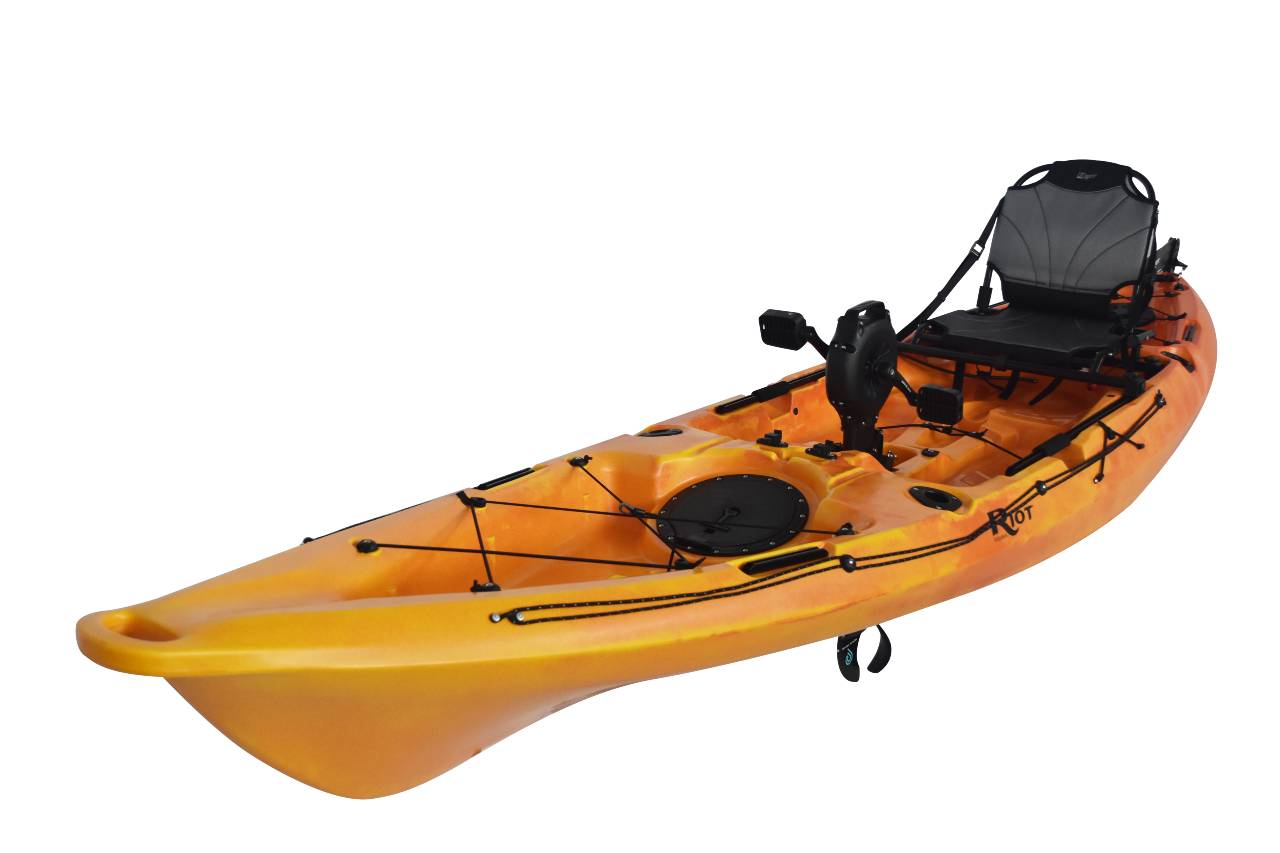 The Mako 12 was created with adventure in mind. This pedal kayak was designed to perform well on flat water or big water for fishing, photography or as a dive platform. Our Impulse Drive pedal unit is the simplest and the lightest on the market, open to the elements yet requiring no special maintenance. Our Comfort Seat, adjustable for leg length and with a high supportive back, is comfortable and quick to dry, and the rudder steering box can be placed on either side to suit your preference. The Mako series is available in 10’, 12’ and 14’ models with more to come. For more information and to watch videos about this model please visit Riot Kayaks.